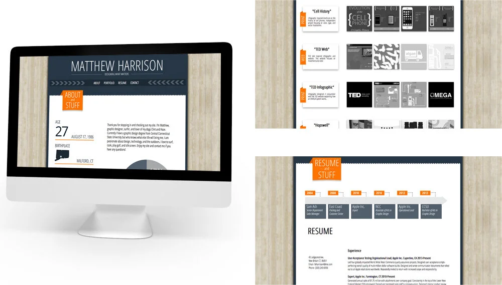 This was a portfolio site created by one of my former students while he was taking my intro to web design class. His design offered a bold color selection with easy to digest chunks of information that let his work really shine through. Main elements taught were HTML and CSS.